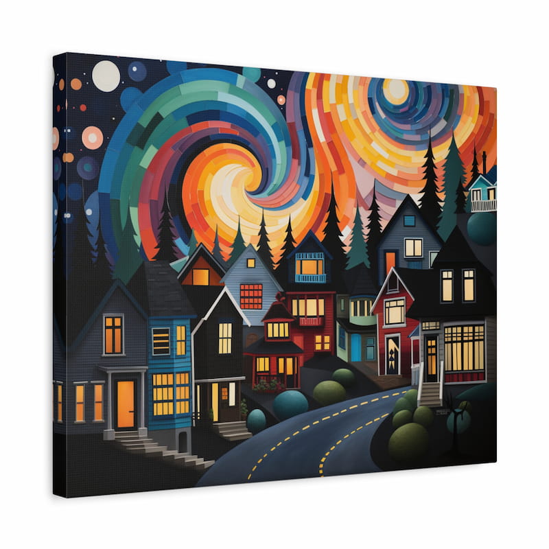 "Van Gogh's 'The Starry Night' is a masterpiece of emotion and energy. This painting, 'Village Night Sky,' is our tribute to that iconic style. We wanted to create a piece that allows you to practice those same techniques, the short, thick brushstrokes, the swirling composition, the high-contrast colors, but with a new, charming subject. It’s a technical exercise in capturing movement and light, resulting in a piece that is both classic and wonderfully unique."